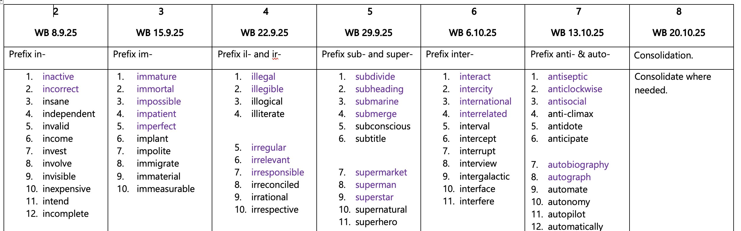 Spellings -Autumn 1